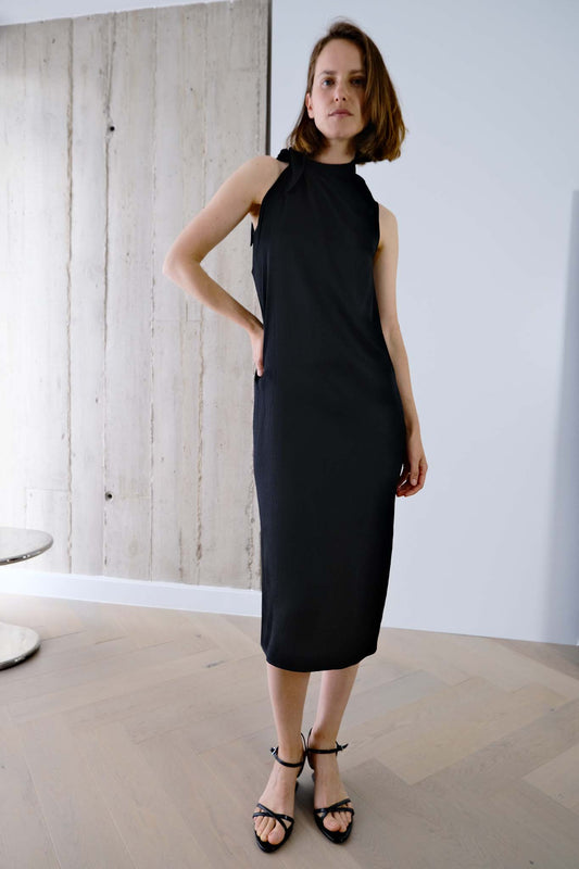 [ 4 ] Scarf Dress in Black Hammered Silk